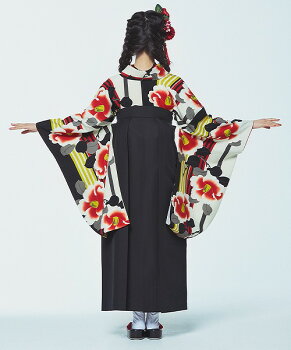 公式 ふりふ 【レンタル】袴【F005】ハイカラ椿・黒袴 レンタル 卒業式 大学 選べる ハカマ 二尺袖 往復送料無料 女性 袴セット 袴フルセット セット 着物セット 貸衣装 レンタル袴 卒業袴 大正ロマン 紅一点 レトロモダン 黒 赤 白 ブラック レッド ホワイト