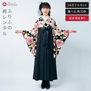 公式 ふりふ 【レンタル】袴【M004】梅・黒袴 レンタル 卒業式 大学 選べる ハカマ 二尺袖 往復送料無料 女性 袴セット 袴フルセット セット 着物セット 貸衣装 レンタル袴 卒業袴 大正ロマン 紅一点 レトロモダン 黒 赤 白 ブラック レッド ホワイト