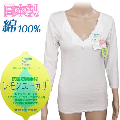 清光ランジェリー レモンユーカリ 8分袖インナー 1318 S M L LL 3L レディース 婦人 女性 下着 肌着 インナー 八分袖 長袖 リラックス 日本製 綿100% 大きいサイズ