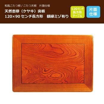 和風こたつ板/こたつ天板 片面仕様 天然杢欅(ケヤキ)突板 120×90センチ長方形 額縁ミゾ有り 120幅長方形サイズです。