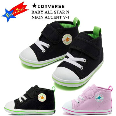 コンバース ベビー オールスター N ネオンアクセント V-1 CONVERSE BABY ALL STAR N NEON ACCENT V-1 ファーストシューズ ベビー マタニティー スニーカー マジックベルト 軽量 子供靴 ブラック 7CL681 7CL682