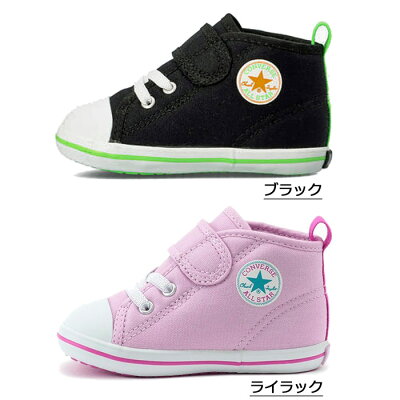 コンバース ベビー オールスター N ネオンアクセント V-1 CONVERSE BABY ALL STAR N NEON ACCENT V-1 ファーストシューズ ベビー マタニティー スニーカー マジックベルト 軽量 子供靴 ブラック 7CL681 7CL682