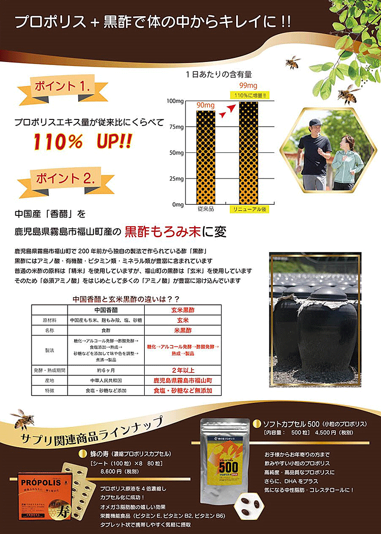 プロポリスと黒酢の相乗効果を実感して下さい♪