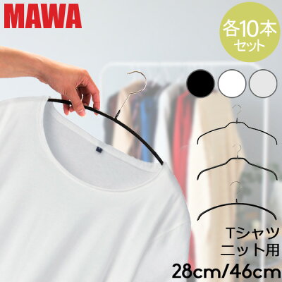 商品名マワ【MAWA】ハンガー エコノミック / シルエット / シルエットライト 各10本セット(28cm(子供用) / 30cm(子供用) / 36cm / 40cm / 42cm / 41cm / 45cm / 46cm) カラーブラック(05)、シルバー(15)、ホワイト(06) サイズ<エコノミック>・30cm(子供用):約幅30.5×厚み1cm、重量約50g(1本あたり)・36cm:約幅36.5×厚み1cm、重量約70g(1本あたり)・40cm:約幅40.5×厚み1cm、重量約75g(1本あたり)・46cm:約幅46×厚み1cm、重量約83g(1本あたり)<シルエット>・28cm(子供用):約幅28×厚み1cm、重量約50g(1本あたり)・36cm:約幅36×厚み1cm、重量約65g(1本あたり)・41cm:約幅40×厚み1cm、重量約75g(1本あたり)・45cm:約幅45×厚み1cm、重量約80g(1本あたり)<シルエットライト(スリムタイプ)>・42cm:約幅42×厚み0.5cm、重量約40g(1本あたり) 素材本体:スチール(PVC樹脂コーティング)フック:ニッケルメッキ 商品について【エコノミック】ベストセラーシリーズのエコノミックは前開きのカーディガンや襟なしのトップス、薄手のニットの収納におすすめです。