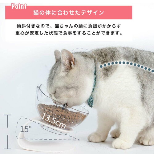 傾斜付きなので、猫ちゃんの腰に負担がかからず重心が安定した状態で食事をすることができます。