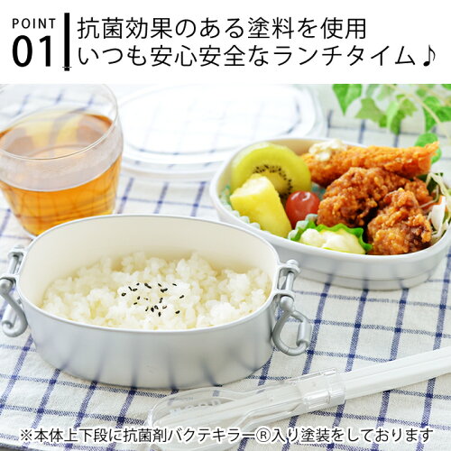 通常のまっすぐなフタと比べて高さがあるため、盛り付けたおかずがを潰れることなくキープします! 本体内側には無機抗菌剤バクテキラーを塗布しており、毎日のお弁当にも安心。