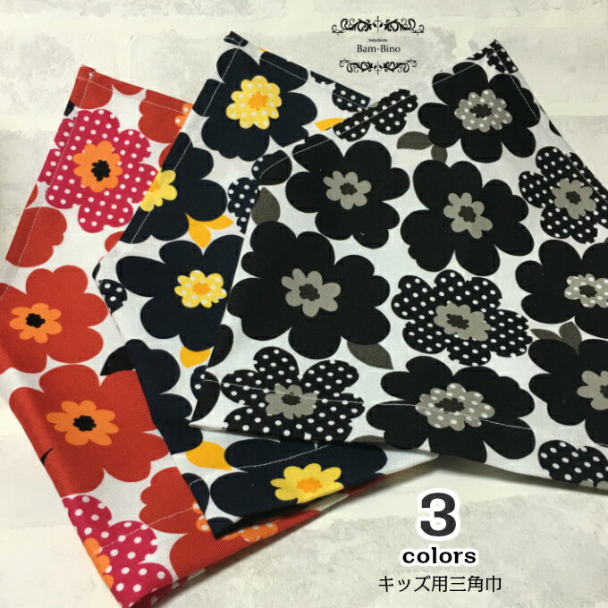今ならメール便送料無料! 子供用フラワー柄三角巾! サイズ:28センチ×24センチ 生地:綿100% ブランド:Bam-Bino【日本製】 人気のハーフサイズガーゼハンカチ5枚セット(厚手タイプ)はこちらをクリック! 人気のミニガーゼハンカチはこちらをクリック! 刺繍名入れタオルハンカチ3枚セットはこちらをクリック! 選べる子供用ガーゼマスク3枚セットはこちらをクリック!