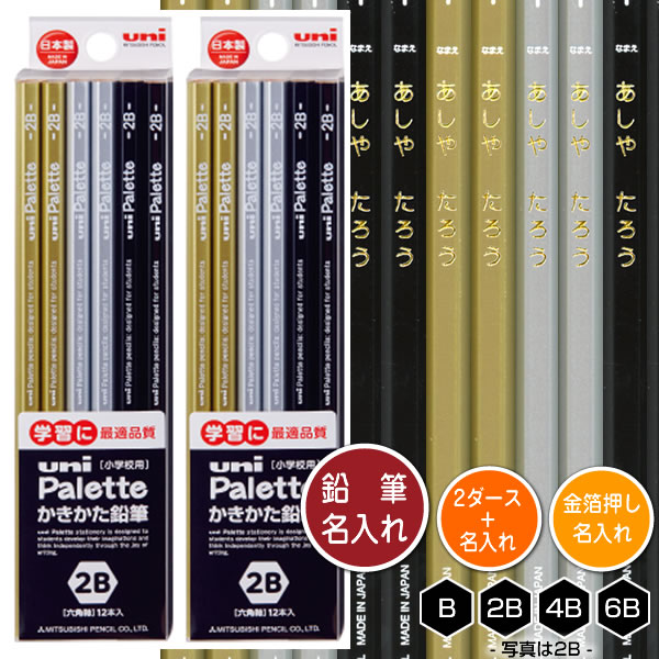 2ダースと名入れのセット商品はこちら> 1ダースと名入れのセット商品はこちら>【商品名】鉛筆2ダース(24本)と金箔押し名入れのセット品 三菱鉛筆 ユニパレット ブラック 5617 6角軸 硬度4種(B・2B・4B・6B) 名入れ1氏名(1書体)のみ かきかたえんぴつ 入学祝い 進級祝い 入園祝い えんぴつ 名入れ代は1ダース分のみ!2ダース目は無料! 【重要】商品について ※こちらの商品は鉛筆2ダースに金箔押しの名入れ彫刻を施したセット商品の専用ページとなります。