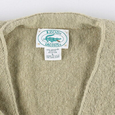 商品詳細 ブランド・LACOSTE・ラコステ・ 特徴・ヴィンテージ・ モデル/形状・IZOD・アクリルニットカーディガン・ 素材・アクリル:100%・ 色・ベージュ系・ 柄・ワンポイント・無地・ 生産国・USA製・ 年代・80年代・ サイズ・メンズL・表記サイズ:L・着丈:60cm・身幅:63cm・肩幅:44.5cm・袖丈:73cm・ コンディション・B・ カテゴリ・メンズ・トップス・カーディガン・ 商品番号・eaa261038・ 取扱店・ネットショップ・ スタッフコメントLACOSTE IZOD アクリルニットカーディガン / メンズL / 商品番号 eaa261038 USEDですので使用感などございますが、まだまだご愛用していただけます。