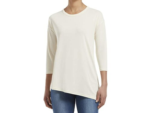(取寄) ヒュー レディース ウィメンズ 3/4 スリーブ クルー ネック ロング チュニック トップ HUE women Womens 3/4 Sleeve Crew Neck Long Tunic Top White Satin